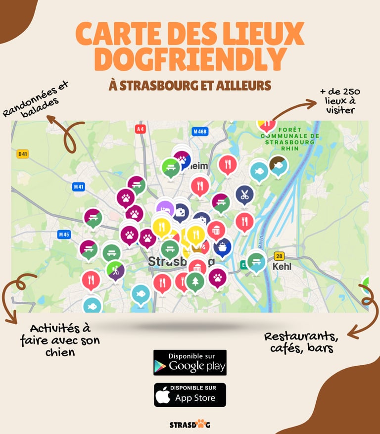 Parce qu’ à travers StrasDog on sait qu'une ville vraiment dogfriendly ne se mesure pas seulement au nombre d’établissements qui acceptent les chiens, mais à la qualité de leur accueil. Retrouvez toutes les activités Dog-hospitality à Strasbourg proposé par StrasDog ici ou sur nos réseaux.