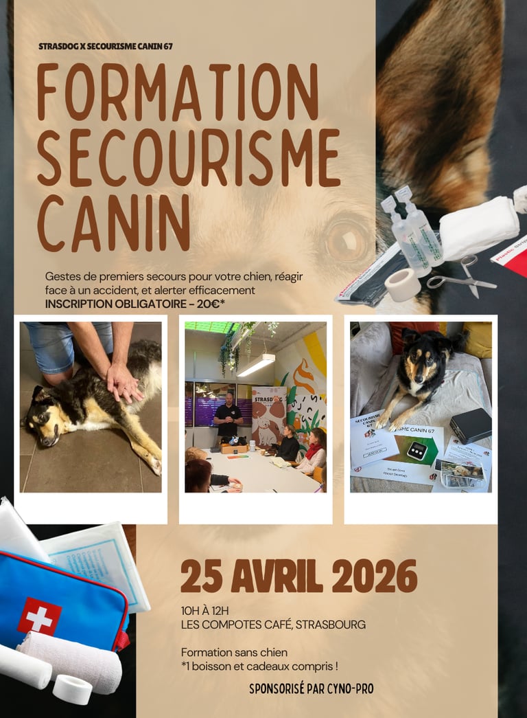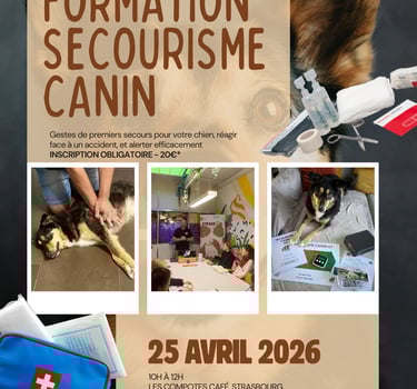 Tarifs : 20€ (inclus une boisson et des cadeaux) - https://my.weezevent.com/formation-premiers-secours-canins