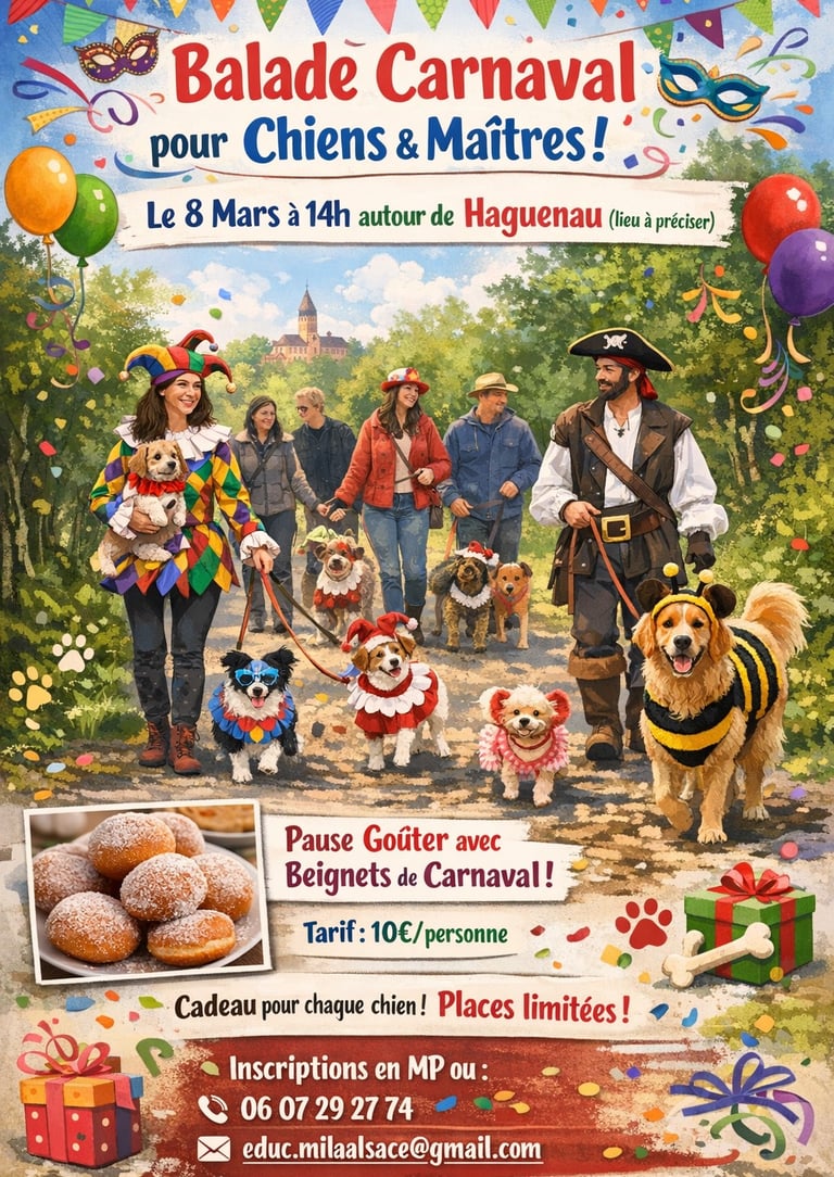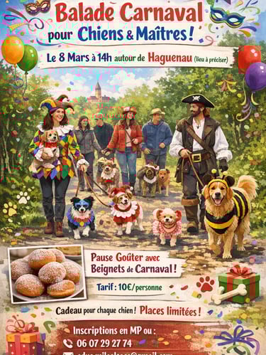 Au programme : Baladez avec votre chien déguisé, organisé par Educ Mila, dans le secteur d'Haguenau venez profiter de ce moment en compagnie de votre toutou.