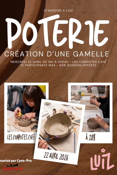 Au programme : En collaboration avec Louise, rendez-vous chez Les Compotes Café pour un atelier poterie afin de créer la plus belle gamelle de votre toutou !