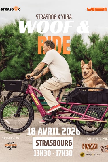 Au programme : Une première à Strasbourg, venez participer à une balade à vélo électrique pensez pour nos compagnons en collaboration avec les vélos Yuba.