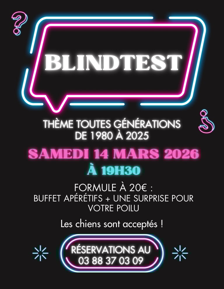 Au programme : Participez à une soirée blindtest pour trouver la bonne réponse ! Toutes les générations confondues de 1980 à 2025, trouver l'artiste et/ou le titre de la musique par équipe ou en solo.
